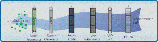 HEPA și de cărbune activ sunt mereu active, pe când generatorul de ioni,